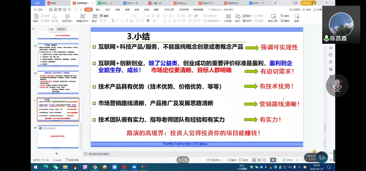 陈昌鑫老师重点从“如何撰写创业计划书”和“如何制作PPT”两个方面为出席会议的师生进行了细致讲解,并对已完成组队的项目,就后续提交材料和答辩工作的展开提出建议;就创业计划书、答辩PPT的制作进行了介绍,为参赛组的工作提了供思路;同时强调项目中要体现可实现性、大众需求性以及技术优势。最后陈昌鑫老师“睿智创新始于心,激情创业践于行。”勉励性爱视频