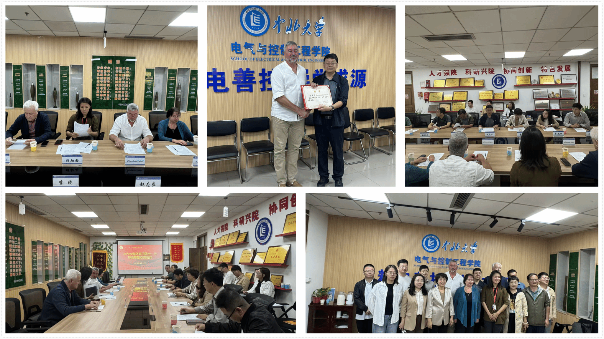 会议由副院长李晓主持,李院长首先对瓦列里院士一行的到来表示热烈欢迎,双方就出席人员进行简单介绍。接着,赵志良院长从学院的历史沿革、师资队伍、科研平台、科研项目、人才培养等几个方面进行介绍。随后,瓦列里院士结合“无人机蜂群协同作业控制”作了主题分享。为进一步深化合作,学院聘请瓦列里院士为客座教授,并为其颁发聘书。