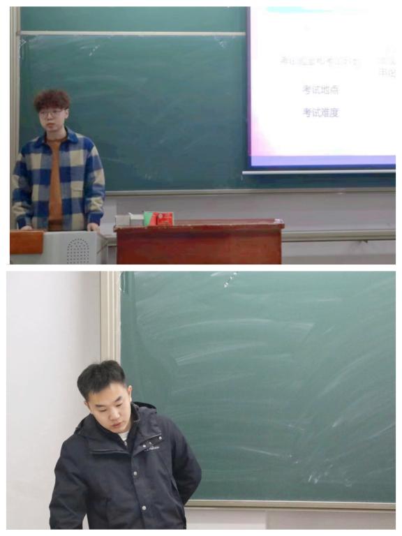 首先讲解的是杨鑫鑫同学,他从研究意义、研究内容向大家分享了基于NB-IoT通信的分布式光伏运维监测技术研究的相关知识。随后结合自身经历向同学们阐述了规划的重要性,同时也向大家强调了竞赛在以后学习和求职过程中的重要作用。