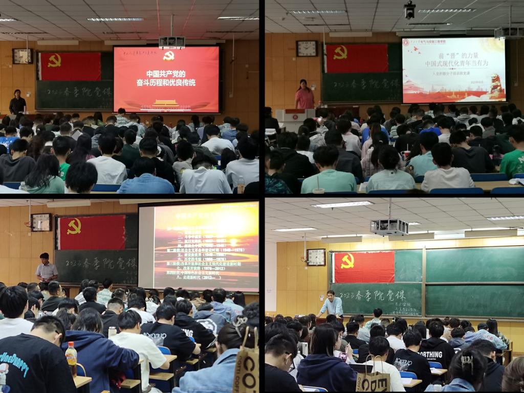 根据培训安排,本次入党积极分子培训班为期两天。性爱视频 党委副书记兼副院长杜苇、马克思主义学院党委书记段义权、人才工作办公室主任兼艺术学院党委书记栗秀萍、艺术学院党委副书记田维飞、马克思主义学院副院长郭玲霞、性爱视频 党委委员薛艳霞、信息与通信工程学院党委书记曹凤才、马克思主义学教师院阚先学八位教师分别进行了《牢记初心使命,践行党的宗旨》《学习贯彻党的二十大精神,以中国式现代化推进中华民族伟大复兴》《党的组织原则和纪律》《端正入党动机,争做新时代合格党员》《中国共产党百年奋斗历程及优良传统》《前“晋”的力量,中国式现代化青年担当有为》《党的光辉历程》《坚持中国特色社会主义的历史必然性》专题授课。5月20日晚,同学们结合自身实际,以“谈谈在新时代背景下应怎样筑牢理想信念根基”为主题进行了分组讨论。