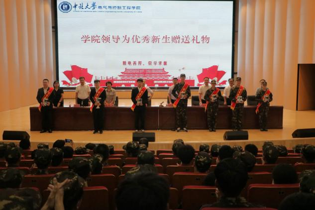 学院领导为优秀新生赠送礼物,并为新生班主任助理颁发聘书。