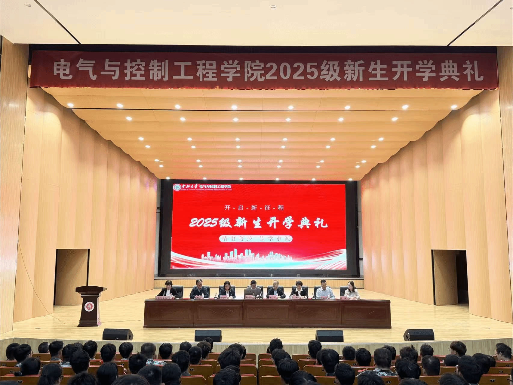 2025级新生开学典礼在此隆重举行。学院党政领导、师生代表与全体新生齐聚一堂,共同见证新一代“电控人”扬帆起航的庄严时刻。典礼由学院党委副书记杜瑞平主持。