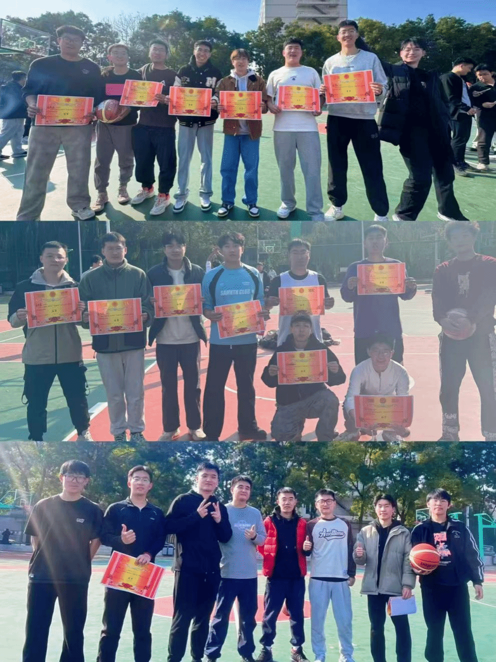 比赛首日,研会指导老师李婷发表热情饱满的动员讲话,要求赛事遵循“安全第一、公平公正”原则,并为全体参赛队员注入信心与动力,鼓励大家在赛场上展现风采。本次比赛共有来自研一、研二及研三年级的6支队伍参赛,篮球健儿们个个雄姿焕发,场上球员们挥洒汗水,默契配合,精彩抢断、精准投篮、坚固防守层出不穷,引得场边观众阵阵喝彩。历时一周多,最终由研三代表队获得了本次比赛的冠军,同时,研三孙忠伟斩获本次比赛MVP。最后,研会工作人员为荣获冠军、亚军、季军的队伍以及全场最有价值球员(MVP)颁发了荣誉证书和精美奖品,同时也向辛勤执裁的裁判员们表达了感谢并赠送纪念品。这一刻,所有的汗水与努力都化作胜利的喜悦与团队的荣耀,掌声与欢呼声响彻球场。