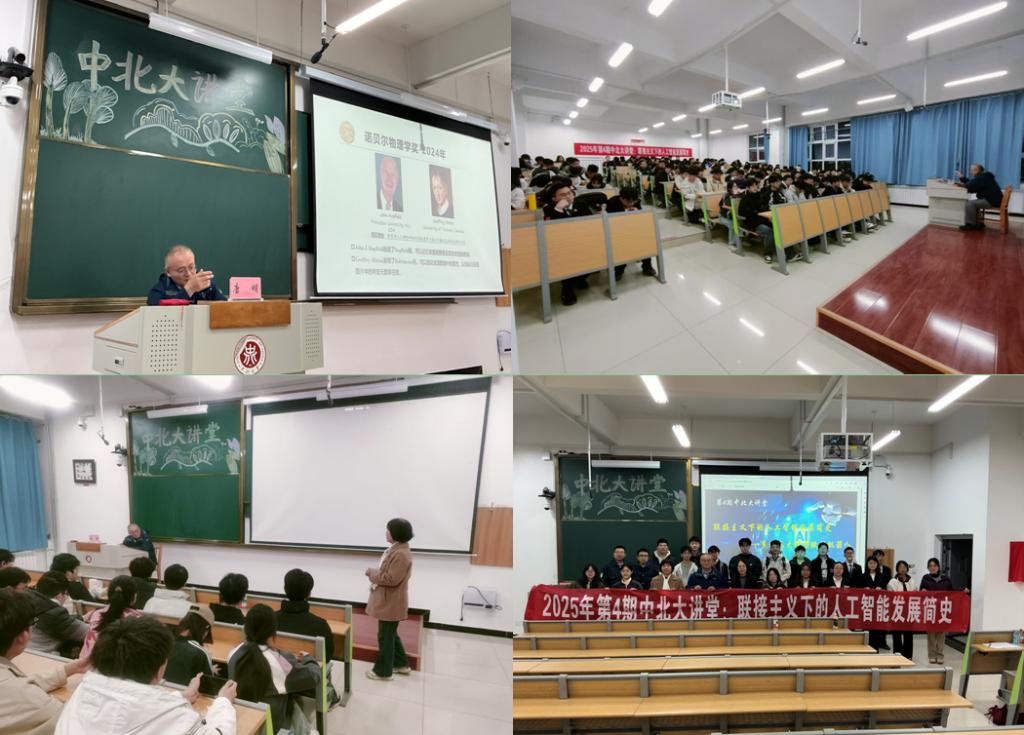 承办的2025年第4期中北大讲堂为中北学子们带来一场主题为“联接主义下的人工智能发展简史”的精彩报告。此次报告荣幸邀请到中科院自动化所紫东太初大模型中心资深研究员、博士生导师唐明做主讲嘉宾。学院党委副书记杜瑞平出席,山西省科学技术馆、太原电视台随访了本次活动。