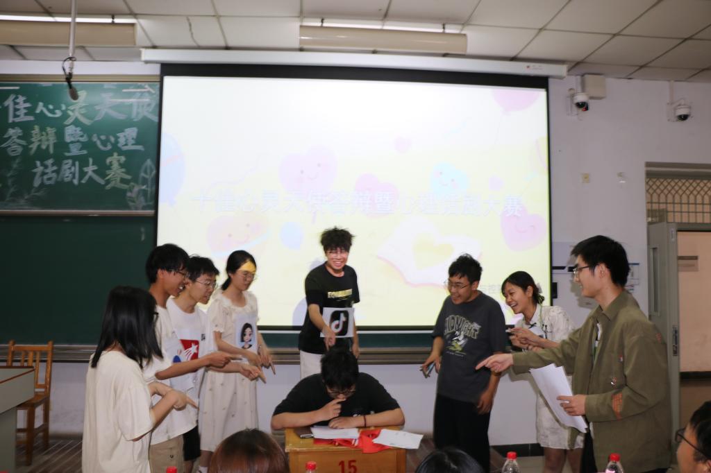 答辩中间安排了精彩的心理剧汇演。24150441班精心编排的《心墙》,24150141、142班联合排演的,级的心理剧聚焦大学校园生活热点,如学业压力、人际关系等,以生动的表演呈现了同学们在成长过程中面临的心理困惑与解决过程。演员们投入的表演,引发了现场观众的强烈共鸣,掌声此起彼伏。