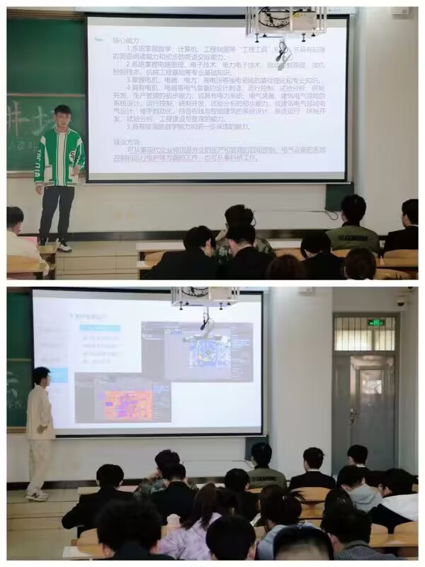 接下来由许匡渊同学进行讲解。他分享了自己加入实验室的成长经历和参加科技比赛情况,鼓励大家积极加入实验室、参加科技创新比赛,开阔眼界,将课本知识付诸实践,历练自我,追求成功。同时许匡渊就为什么加入实验室、实验室能做什么,实验室成员的培训及考核等方面对智能控制创新实验室进行介绍。