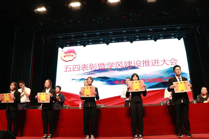 “先进团总支”、“先进团支部”、“优秀团干”代表、“优秀团员”代表、“优秀团务工作者”代表、“优秀媒体工作者”代表、“优秀学生工作者”代表、“优良学风班”代表和各级各专业第一名的集体和个人进行了表彰。并由校长奖章荣誉获得者翟晨萌同学和中北奖章荣誉获得者——15070541班代表上台发言,他们均是以高标准严格要求自己的个人或集体,号召广大团员青年主动作为,奋勇向前,用所学知识奉献青春,贡献自己的力量。