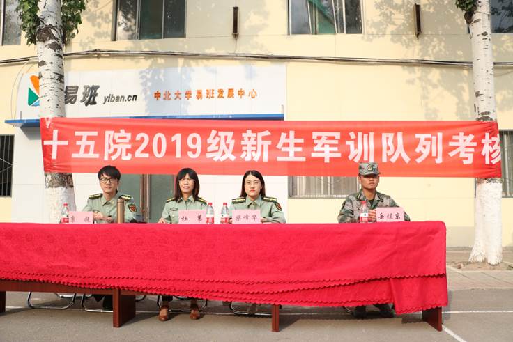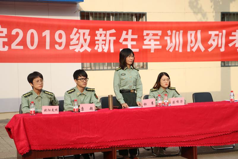 2019级新生军训队列考核正式开始。出席本次军训考核的领导老师有:电气控制工程学院党委副书记杜苇老师,学生科科员柴峰华老师,学生科科员欧阳爽悦老师,学生科科员康超老师。