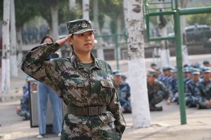 同学们以班级为单位,迈着整齐的步伐,喊着响亮的口号步入训练场,在副营长的指挥下,表演了稍息、立正、停止间转法等动作,向大家展示了自己在经历过军训训练后取得的可喜成绩。同学们动作规范、步伐整齐、队伍雄壮,举手投足间尽显十五院学子吃苦耐劳、团结奋进、坚韧不拔的精神风貌。