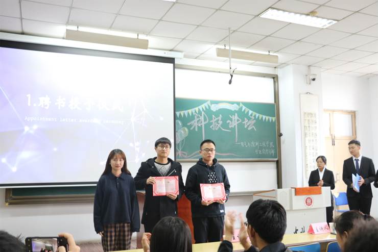 学习部部长刘月婷为两位主讲人颁发聘书。