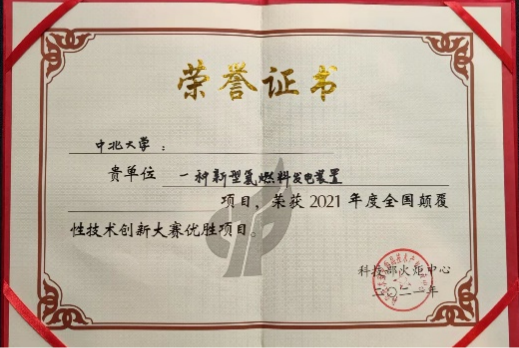 的“一种新型氢燃料发电装置”被评为优秀项目,是山西省唯一入围领域赛的项目。