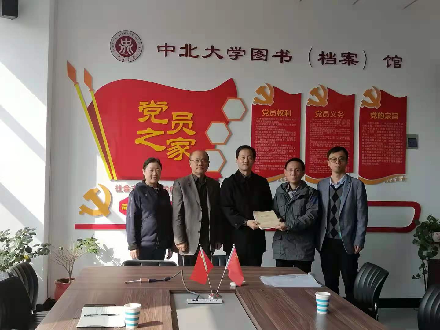 原自动控制系自动化专业01031B5班校友田晓青与仝晓刚专程回到学校,向档案馆捐赠一批文件,捐赠仪式在图书馆二层举行。档案馆馆长王福明、副馆长冯昆林等相关人员参加。