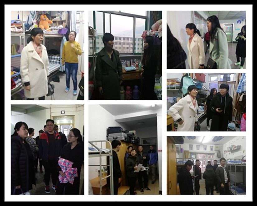 党委副书记杜苇老师、科研科副科长研究生辅导员周月琴老师,学生科和团委全体辅导员老师参与检查此次检查工作。
