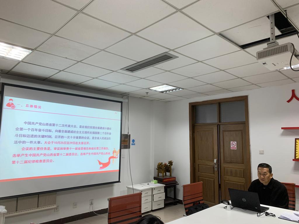 党委在主楼619会议室召开党委理论学习中心组专题学习。深入学习贯彻中共山西省第十二次代表大会精神。学院领导班子成员、党委委员、各党支部书记、各科室负责人参加了学习,本次学习由学院党委书记陈晔同志主持。